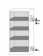Model Q90.195.090 je vybaven třemi policemi a jednou záchytnou vanou, dodáván se světle šedými dveřmi.