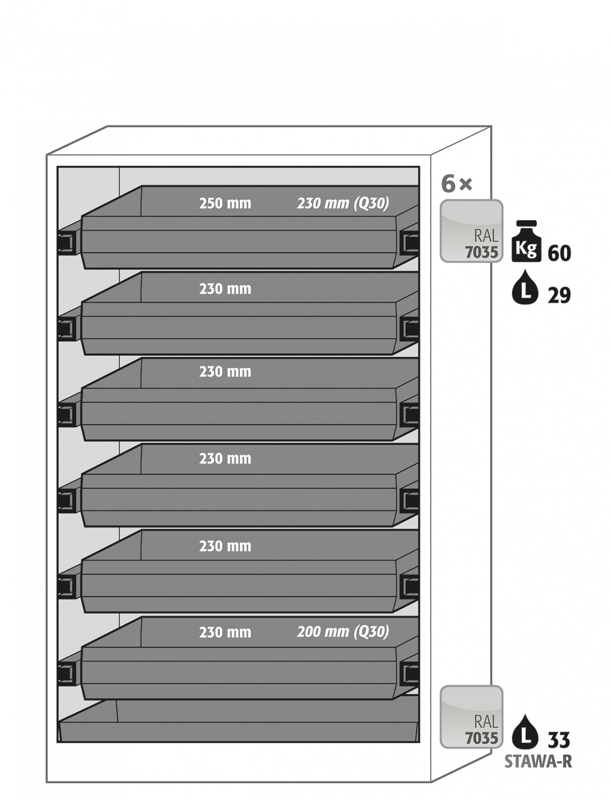 Skříně této řady mají robustní kostru vždy v antracitové barvě, křídla dveří je možné dodat v 7 barevných variantách, bez navýšení ceny. Mají také inovovaný zámek, který je zapuštěný do dveřních křídel. Sokl těchto skříní lze při stěhování vyjmout a docílit tím pohodlného naložení na vidlici vozíku nebo možnosti zasunutí dvou pomocných "Q-Mover", sloužících pro snadné přemístění. Uvnitř mohou být skříně vybaveny policemi, záchytnou vanou, případně se zákrytem děrovaným plechem nebo různým počtem výjezdů, které jsou velmi přehledné.