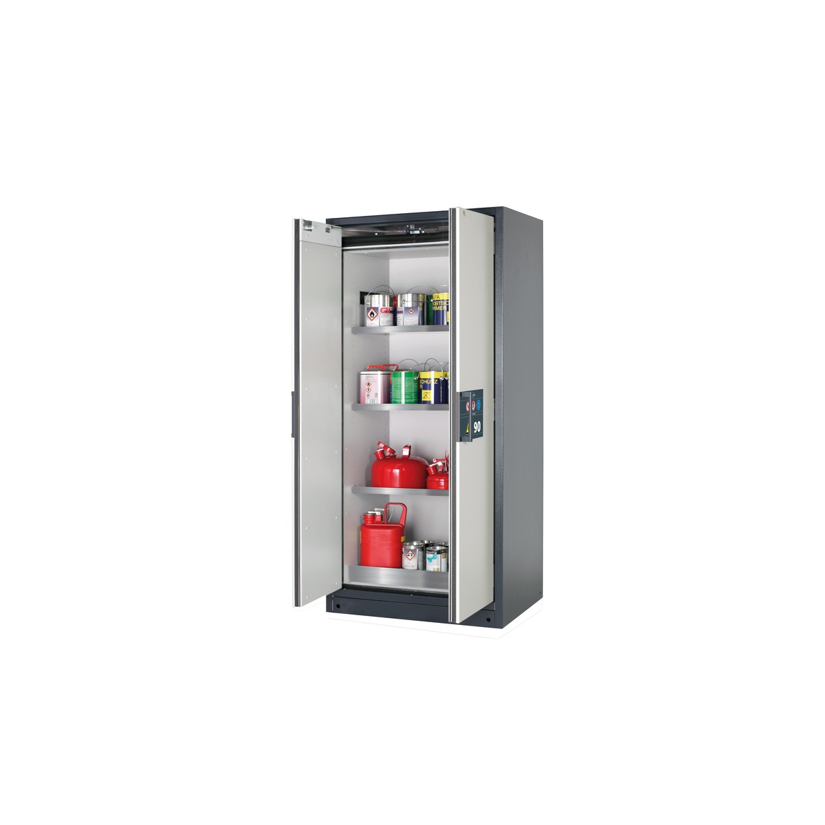 Skříně řady Q-PEGASUS-90 mají křídlové dveře s aretací a samočinný uzavírací systém s pulsním časovačem. Požární odolnost 90 minut.