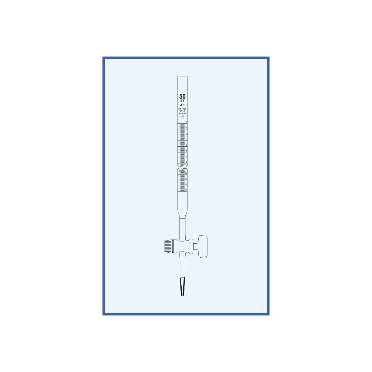 Byreta s přímým kohoutem třídy AS, cejchovaná, teflonové kladívko, 25 ml: